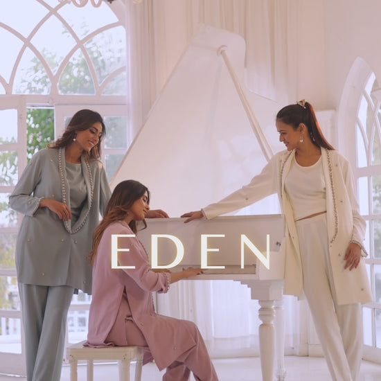 Discover "Eden," a masterpiece co-ord set designed with the discerning modern woman in mind. This luxurious ensemble showcases a crystal-embroidered jacket that dazzles with every turn, complemented by a sleek, fitted inner top and perfectly tailored straight pants. Transform your wardrobe with Eden and leave a lasting impression at every occasion!