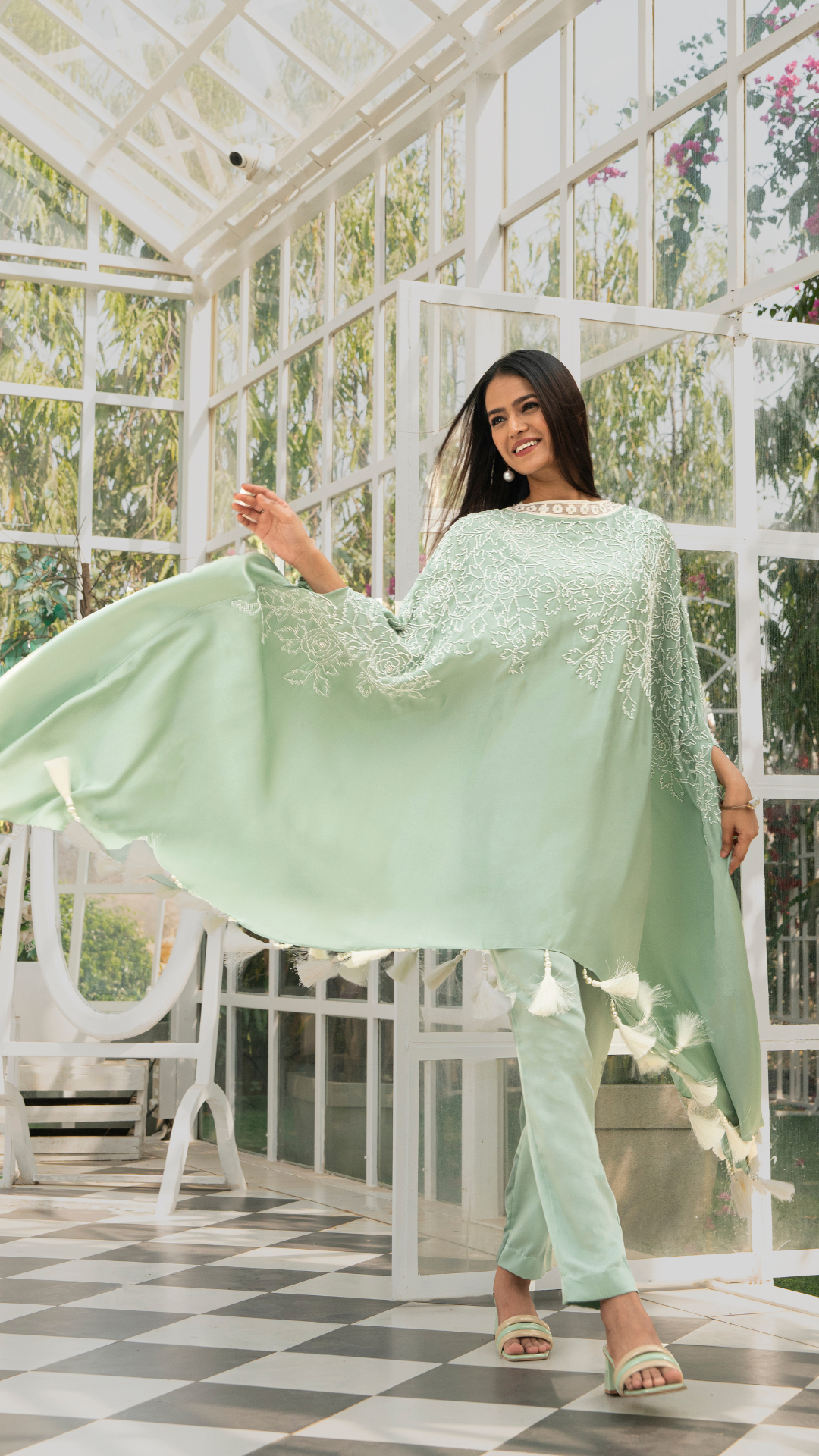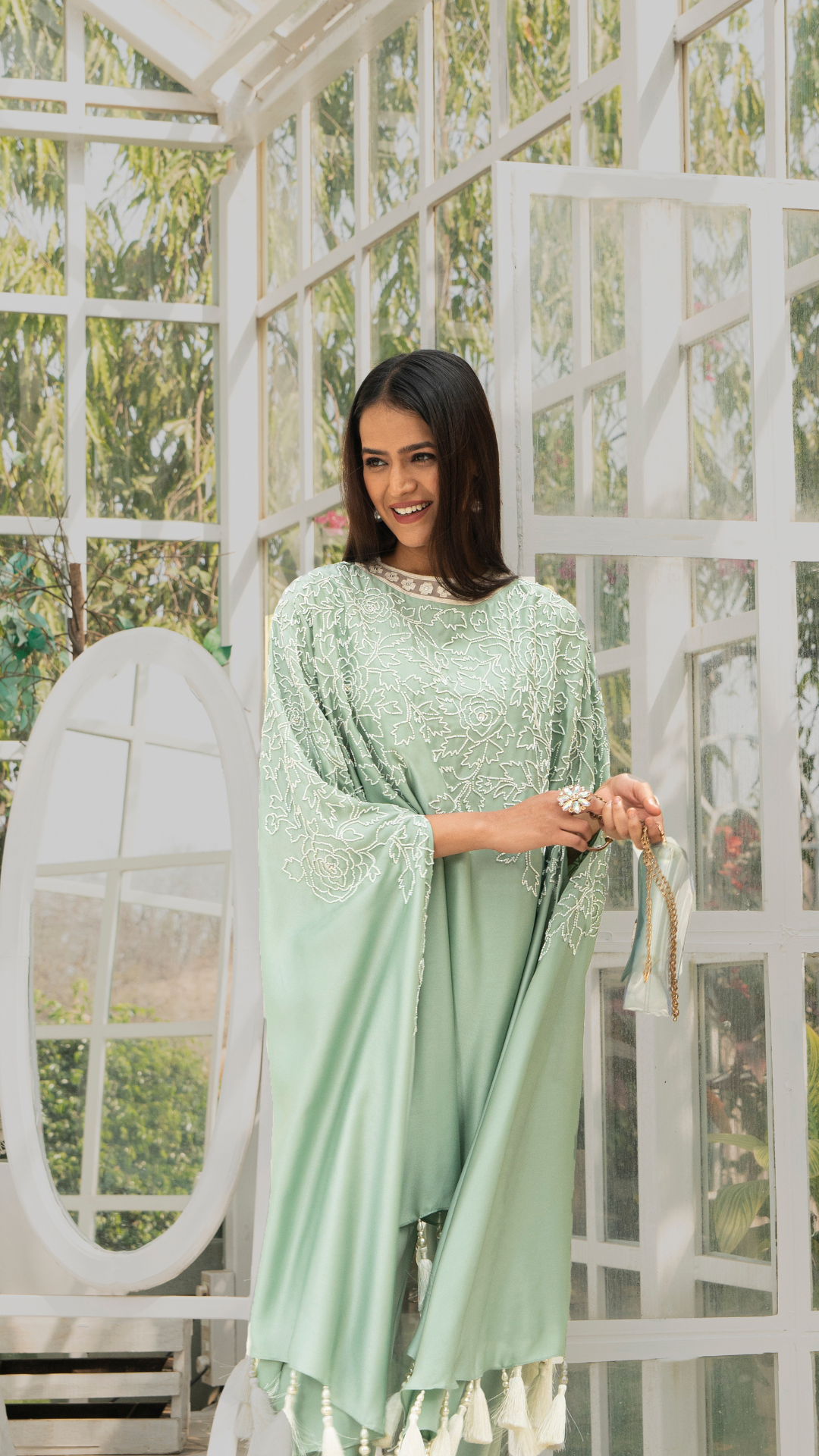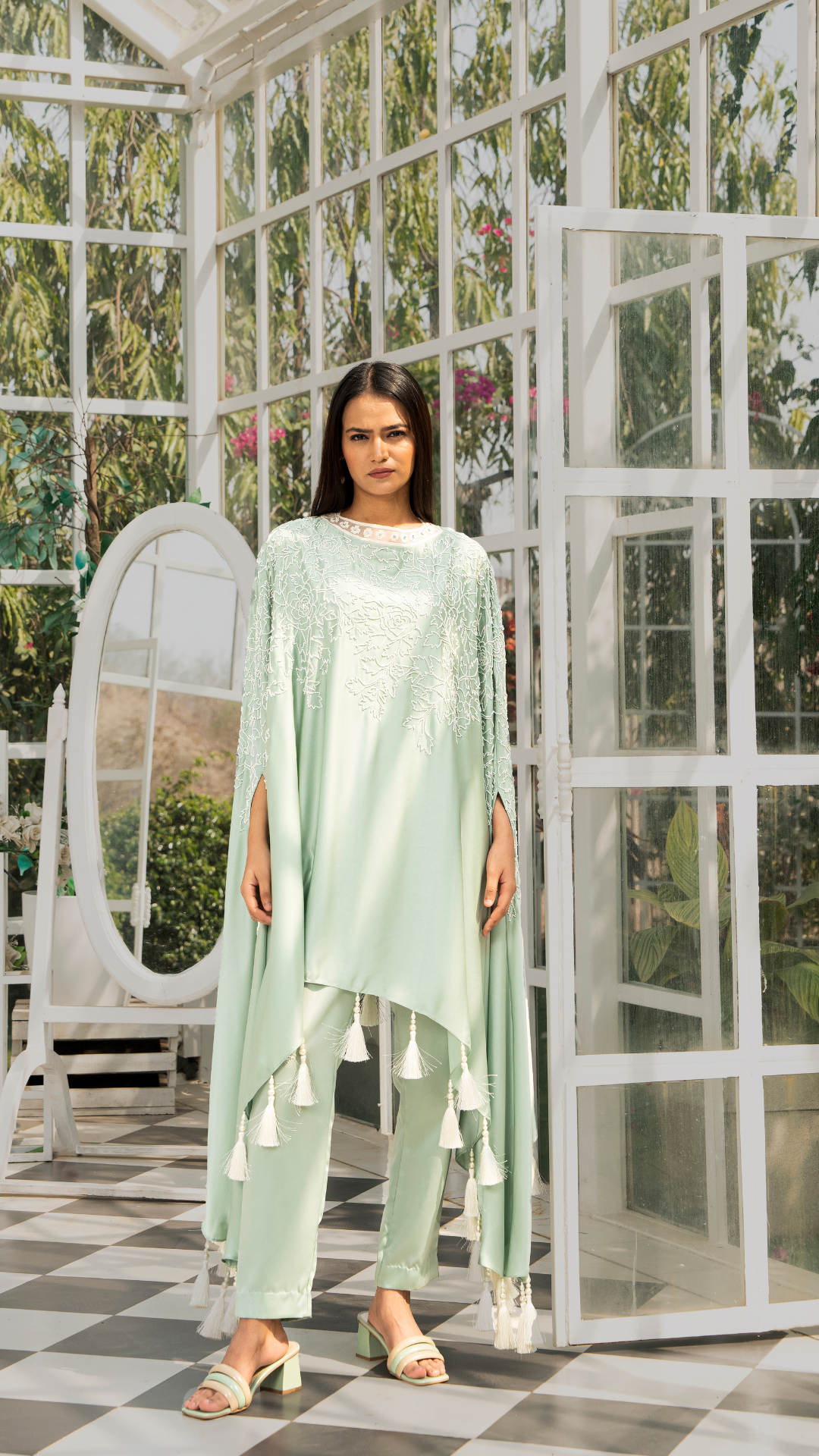 Unveiling "Hana," a versatile cape featuring timeless, intricate luxury hand embroidery. This masterpiece is crafted to perfection, exuding an irresistible aura of enchantment. Elevate your style, embrace the allure, and celebrate the magic of "Hana."