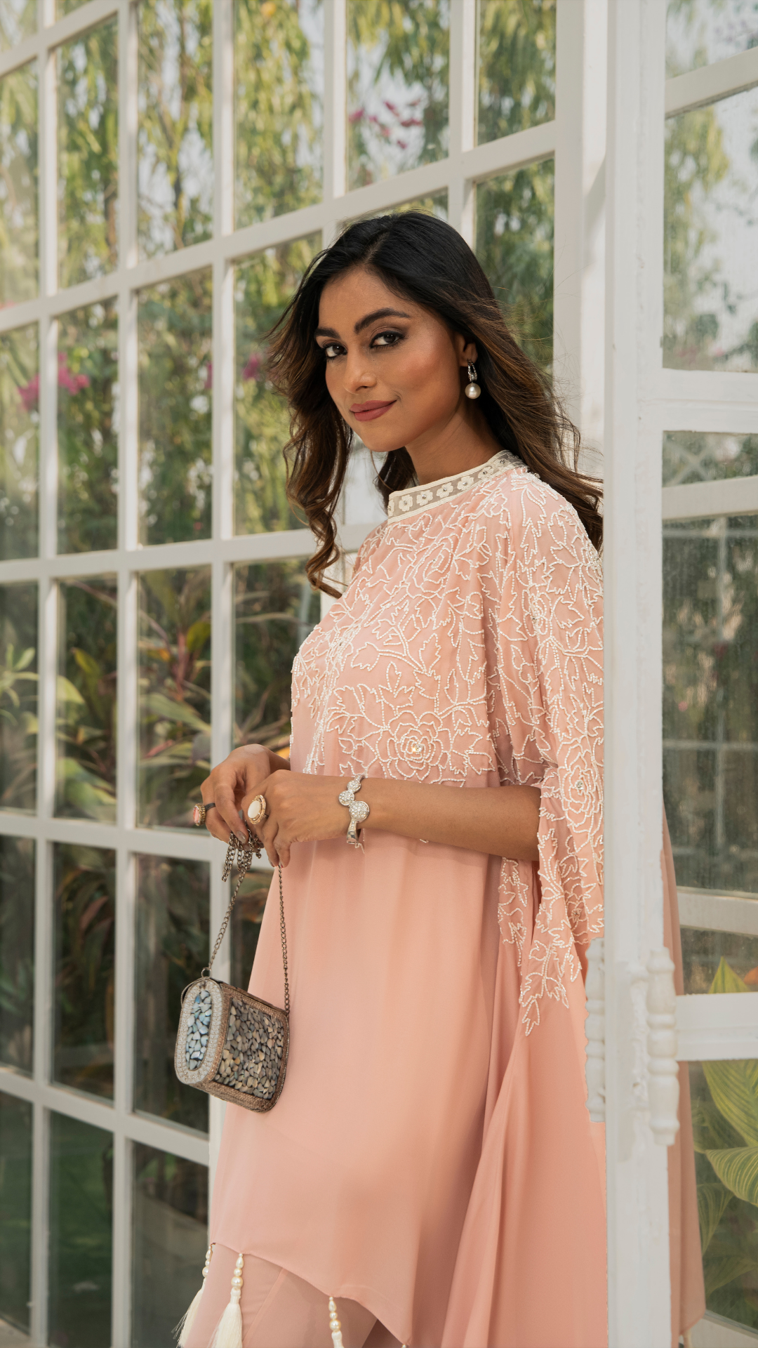 Unveiling "Hana," a versatile cape featuring timeless, intricate luxury hand embroidery. This masterpiece is crafted to perfection, exuding an irresistible aura of enchantment. Elevate your style, embrace the allure, and celebrate the magic of "Hana."