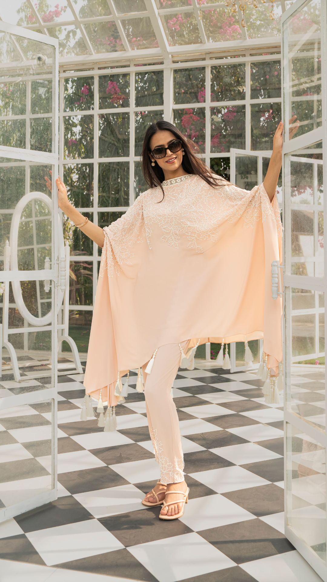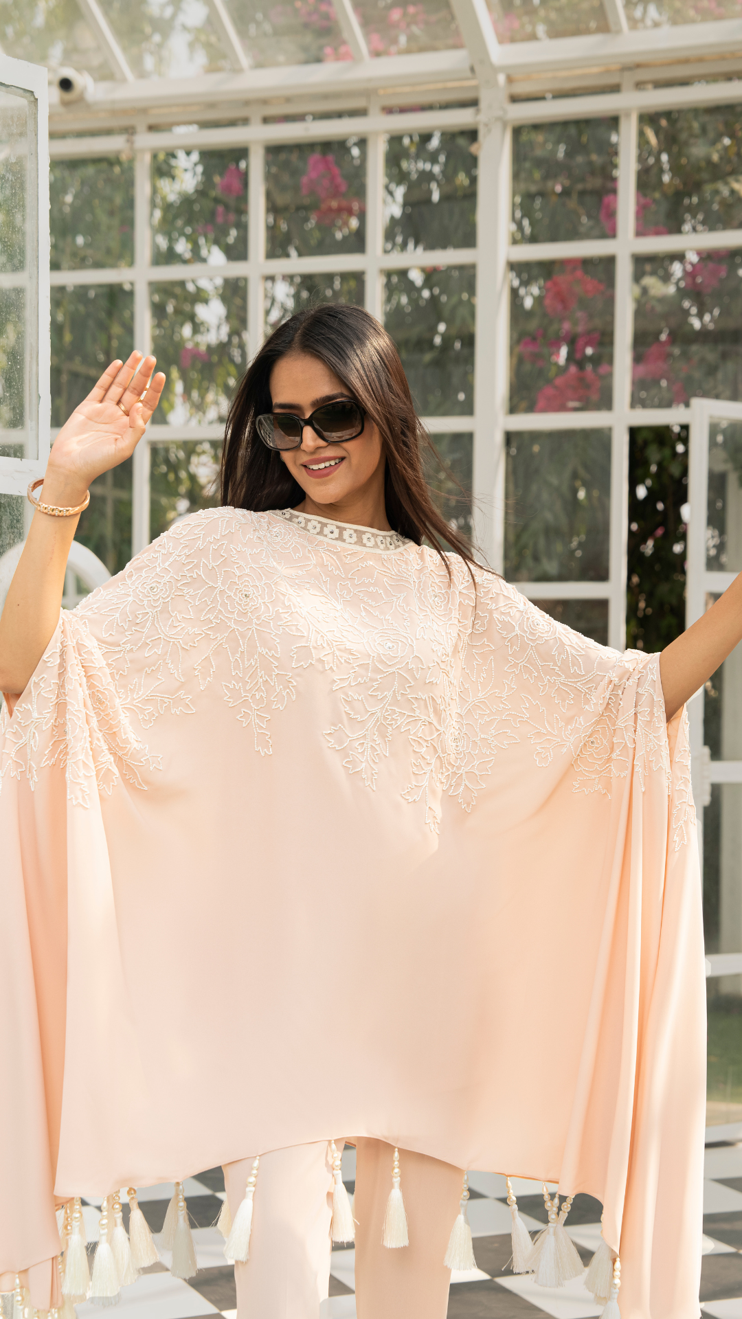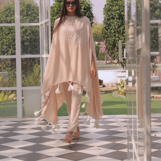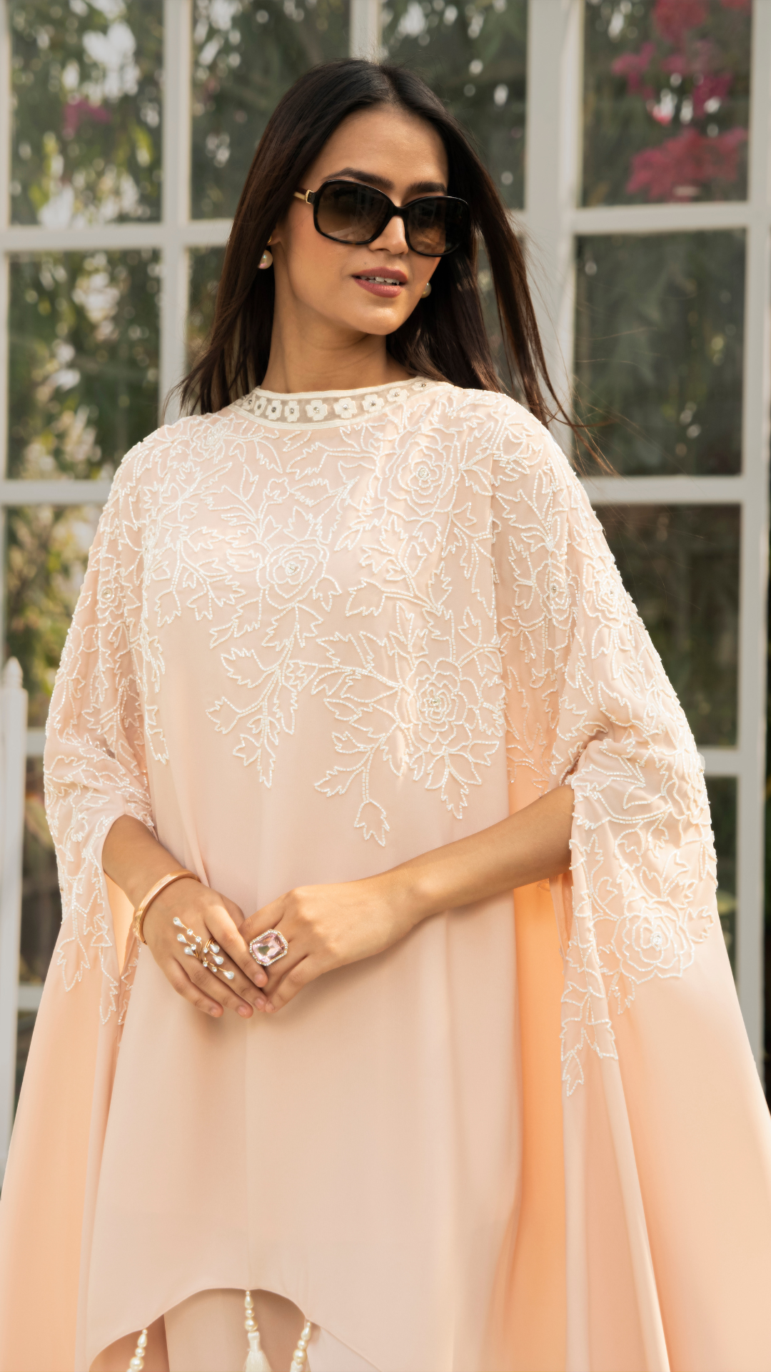 Unveiling "Hana," a versatile cape featuring timeless, intricate luxury hand embroidery. This masterpiece is crafted to perfection, exuding an irresistible aura of enchantment. Elevate your style, embrace the allure, and celebrate the magic of "Hana."