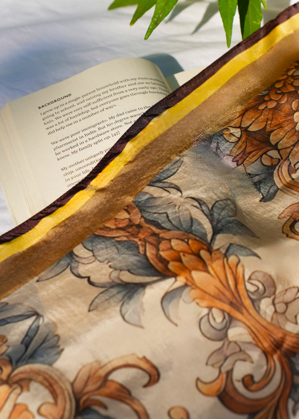 Drape yourself in opulence and artistry with our exquisitely crafted silk scarf, a tribute to the grandeur of Baroque elegance. A mesmerizing symphony of Olive Green unfolds across lustrous silk, reminiscent of the rich tapestries from a bygone era. The intricate scrollwork and ornate motifs whisper tales of regal splendor, making it a timeless accessory for the modern muse.