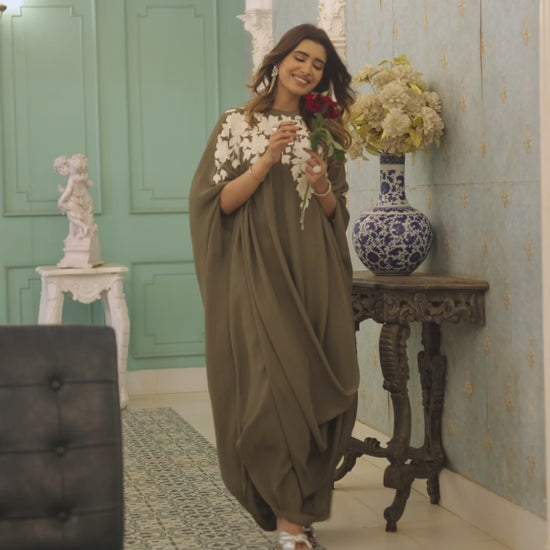 Zahra: Your Ultimate Style Companion! Introducing "Zahra," an exquisite cape crafted from the finest Georgette. This elegant piece features stunning floral patch embroidery and handcrafted bead tassels, flowing gracefully with every movement to offer a blend of sophistication and ease. Perfect for both day and evening affairs, "Zahra" ensures you look and feel your best. Elevate your style with "Zahra" and embrace effortless classiness today.